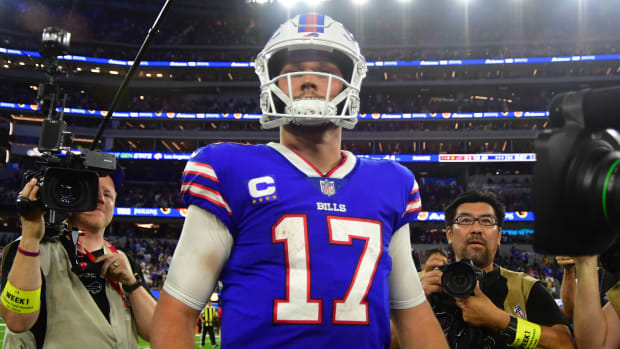 Josh Allen Of The Buffalo Bills Walks To The Sideline During The Buffalo Bills Buffalo Bills Football Bills Football